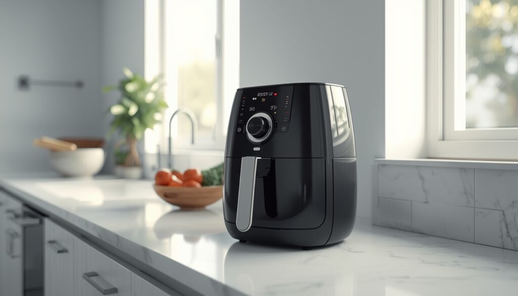 Las mejores freidoras de aire de 2026 situadas en una cocina luminosa junto a ingredientes saludables.